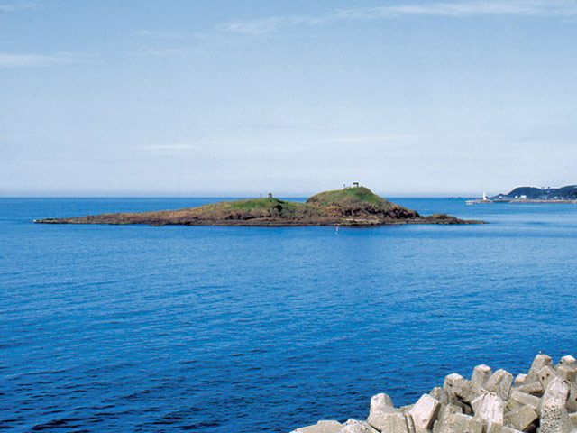 中浜海岸沖に浮かぶ離れ島。夏は雄島花火大会が開催されます。夕日に映えるシルエットが美しい。