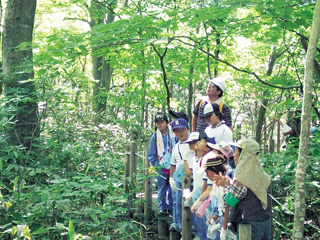 人里近くにありながら推定樹齢200年以上の巨木もみられるなど、豊かな自然を保っているブナ林。散策道も整備されています。事前にガイドの申し込みが必要です。